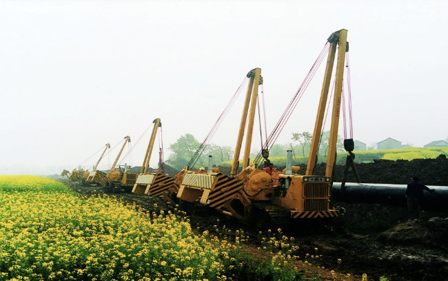 西气东输工程师国家实施西部大开发战略的标志性工程之一,是中国管道史上距离最长(约4000公里)、管径最大、地质情况复杂;穿越河流多,施工难度大的特点,在中国管道建设史上前所未有。为了支援西部开发,乐虎lehu国际官网公司在研发制造推土机的基础上,跟踪国际先进技术开发研制了国内新型吊管机产品,为确保国产吊管机的质量性能,乐虎lehu国际官网研究院组织科研人员调动各种资源,为西气东输工程开发出45t、70t级吊管机,该产品通过国家级鉴定测试,各项技术性能指标达到国际同类产品先进水平。为整个西气东输工程建设发挥了重要作用,特别在重点工程“涩宁兰”施工中,乐虎lehu国际官网12台吊管机以可靠的质量,上乘的服务,得到大庆、四川石油管道局领导和用户的一致好评。西气东输工程被国家评为优质重点工程。