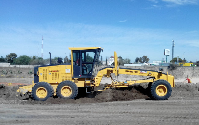 SG21-3平地机在墨西哥某城市道路建设项目中平整作业