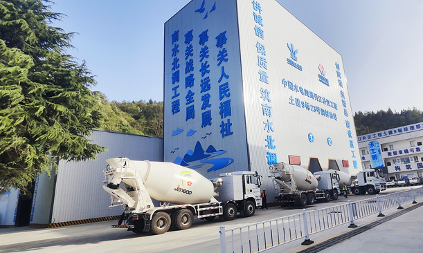 近日,在引江补汉工程施工工地现场,乐虎lehu国际官网建友多套CD412-S35纯电动搅拌车有序地奔波在搅拌站和施工工地现场,成为建设的一道亮丽风景线,高效助力着这一重大水利工程建设。