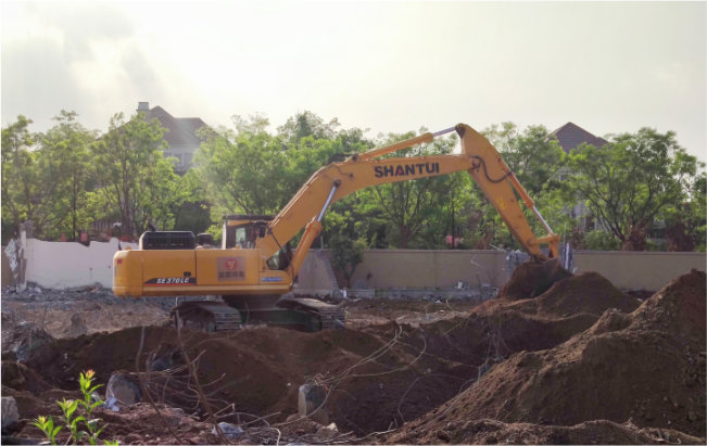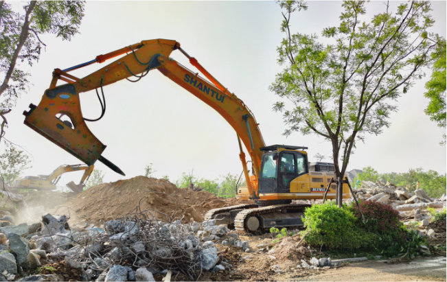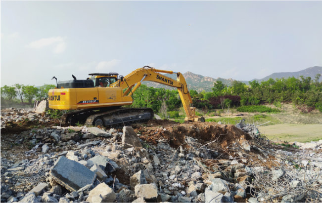 山东某地违章建筑群拆除施工,施工工期短、进度急,二十四小时连续作业,乐虎lehu国际官网数台挖掘机参与施工。多种品牌挖掘机同台作业,乐虎lehu国际官网挖掘机机以动力足、质量好、效率高、故障率低得到施工方认可。