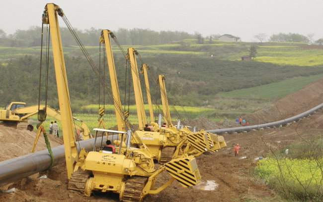 西气东输工程师国家实施西部大开发战略的标志性工程之一,是中国管道史上距离最长(约4000公里)、管径最大、地质情况复杂;穿越河流多,施工难度大的特点,在中国管道建设史上前所未有。为了支援西部开发,乐虎lehu国际官网公司在研发制造推土机的基础上,跟踪国际先进技术开发研制了国内新型吊管机产品,为确保国产吊管机的质量性能,乐虎lehu国际官网研究院组织科研人员调动各种资源,为西气东输工程开发出45t、70t级吊管机,该产品通过国家级鉴定测试,各项技术性能指标达到国际同类产品先进水平。为整个西气东输工程建设发挥了重要作用,特别在重点工程“涩宁兰”施工中,乐虎lehu国际官网12台吊管机以可靠的质量,上乘的服务,得到大庆、四川石油管道局领导和用户的一致好评。西气东输工程被国家评为优质重点工程。