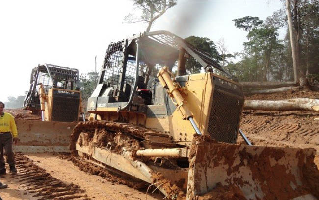 SD22F推土机作业于非洲某森林,承担道路清障,大型木材托运等工作,SD22F伐木版推土机,增加伐木棚提升安全性,后配置机械绞车,牵引力强劲,让施工更简单。
