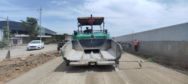 该项目为期60天,建设内容涵盖道路、排水、给水、照明及绿化等多个方面,其中道路工程由山西科坤建筑工程有限公司承建。施工现场全程严格按照国家道路建设标准进行,主要施工环节为水稳层摊铺与压实。作业期间,乐虎lehu国际官网SPF82-G摊铺机与一台轮胎压路机、一台单钢轮压路机协同配合,高效完成了当前阶段的水稳层施工任务。